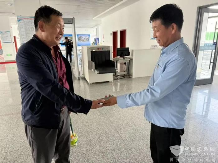是驾驶员拾金不昧、乘客微笑感谢的样子