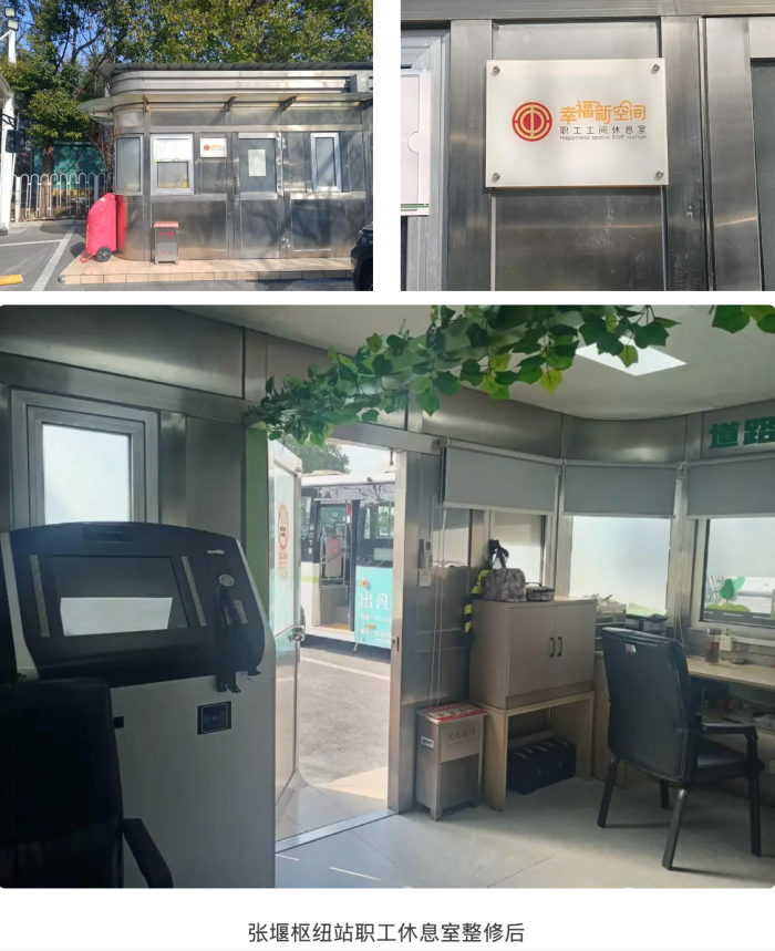 近几年,公司通过实施“三年行动计划”,逐一对张堰枢纽站、金山铁路金山卫站、富川路枢纽站、龙胜路停车场等大大小小10余处场站的职工休息室进行了全面整修。通过优化空间设计、更新软硬件设施,为职工营造了舒适放松的休憩场所,有效缓解了工作疲劳,提升了工作积极性与团队凝聚力。不少职工反映,新整修的休息室不仅宽敞明亮,而且设施齐全,让他们切实感受到了公司的关怀与温暖,极大地提升了他们的幸福感和归属感。