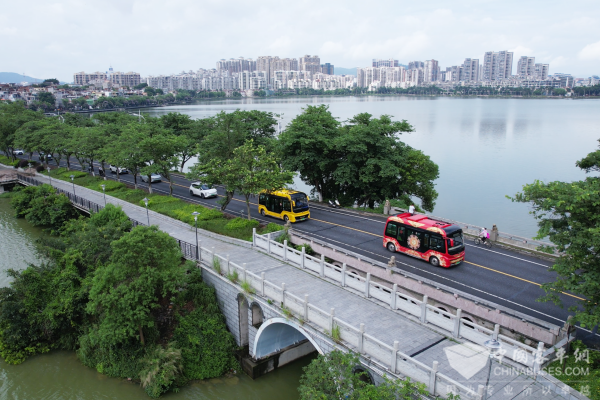造型可爱,灵动小巧,金旅驰睿批量投放,首次开进大型车辆无法通行的沿湖宝环大道,也带来了全新的体验。“那段路窄,多年来没有公交敢进,但风景是星湖的精华。为此我们开了多次专题会,反复调研安全问题,最终决定‘大胆一试’。”苏国柱回忆,这一决策让线路真正实现了“贴景而行”,成为“多年想做却没做成”的突破。