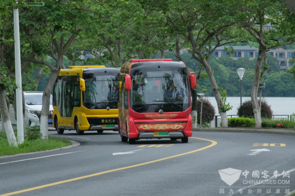 “普通6米公交侧重通勤,但金旅驰睿观光车的每一处细节都为‘看风景’服务。”苏国柱解释,车辆采购时曾对比多个品牌,最终选择金旅观光车,正是看中其“亮眼的外观+实用的功能”。事实证明,金旅驰睿“红小巴”“黄小巴”的明快配色一经亮相,便成为街头焦点,“环星湖专线开通至今,市民与游客反响热烈。客服热线常收到表扬,‘车可爱’‘景好看’‘坐着舒服’是高频词。”苏国柱笑着说。