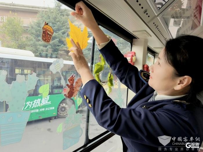 228路驾驶员管涛道出了打造主题车厢的初衷:“步入秋天,香港西路两旁、八大关周边,树叶纷纷换上了金黄的盛装。每年这个时节,都会有大批市民慕名前往八大关赏秋。今年又看到‘落叶缓扫’的新闻,想着能让大家在乘车途中也能感受到浓浓的秋意,便萌生了打造主题车厢的想法。”