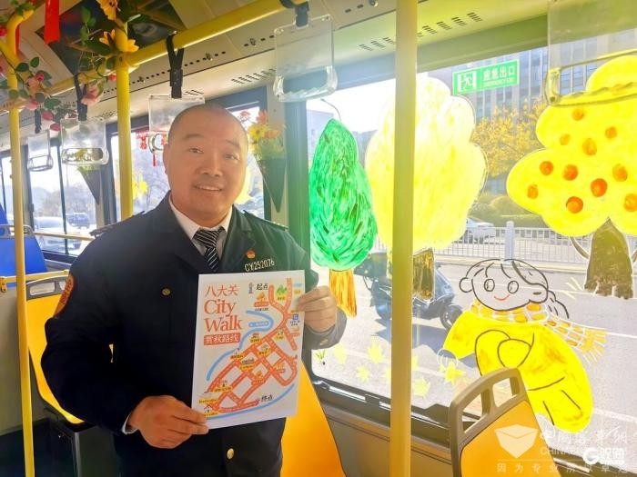 同样引人注目的还有26路“一叶知秋”主题车。作为赏秋观光线路,车厢车窗上贴满了生动有趣的“捡秋”贴纸及八大关、中山公园等秋景最佳观赏攻略。“岛城已进入深秋时节,近日气温回升,大家可以乘坐这趟主题车奔赴一场‘秋日约会’。”公交集团市南巴士四分公司志愿者表示,希望每位乘客都能在这趟旅程中找到属于自己的秋日记忆。