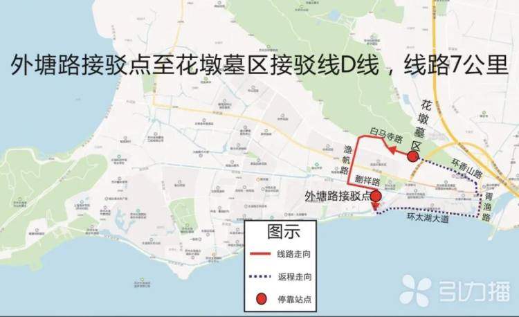 此外,扫墓专线乘车点分布在木渎旺家村P6停车场、石湖渔家村停车场、地铁5号线太湖香山站4号口,运营时间集中在7:00—13:00,现场还有公交管家引导乘车,线路将根据客流动态发车。