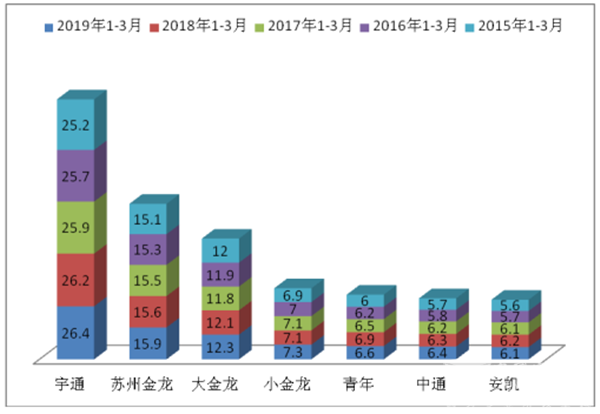 2019年一季度苏、鲁、粤、豫、川11-12米公路客车市场特点简析