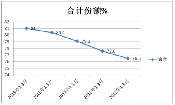 根据上牌数据统计,主流公路客车企业2019年1-3月在广东、江苏、山东、河南、四川等五大主流区域11-12米公路客车市场份额与去年同期比较表(%)