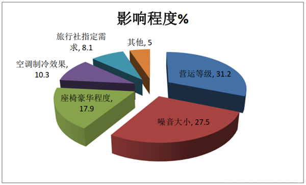 旅游客运公司最在意的是有无营运等级,根据调研,只有达到高一级才能跨区营运。其次是发动机噪音大小,有无旅游客户比较在乎舒适性;再次是座椅的豪华程度。旅游客户比较在意座椅材料的质量和座椅布置的灵活性等。第四是很多旅游客运公司的客户是旅行社,因为旅行社一般不买车,只向旅游公司或者租赁公司租车,因此,旅游公司比较注重旅行社对考斯特客车的指定需求。空调制冷效果的好坏(广东比较热)也是旅游公司比较注重的因素。同比可知,旅游客运市场对营运等级、噪音、空调制冷效果等要求提高了。
