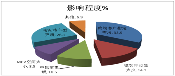 团租用户(不做团体车时,就租赁出去)需求考斯特车型的比例最大的群体是终端客户的指定需求;其次是原有的7米中巴车型使用到期,需要更新车型,再次是目前使用的中巴车型落后需要更新;还有就是及目前正在使用的微客车型空间太小,不受客户青睐,这些都是团租用户需求考斯特车型的内在需求因素。同比可知,终端客户需求及考斯特车型更新、中巴车型更新等影响程度更大。