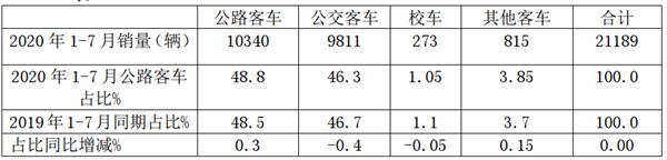根据上牌数据统计,2020年1-7月广东区域各细分市场大中客销量与2019