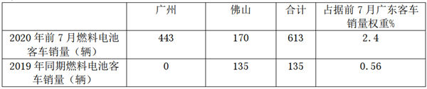 从以上我们不难看出,燃料电池客车在广东区域发展速度较快,是2020年前7月广东区域客车市场中的一个亮点,也是燃料电池客车行业销量最多的区域,占据行业76.3%(上牌数据显示,2020年前7月行业销售燃料电池客车803辆),是名副其实的行业排头兵和市场领跑者。
