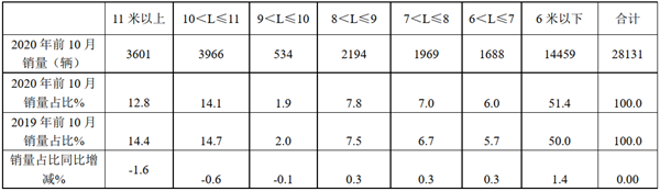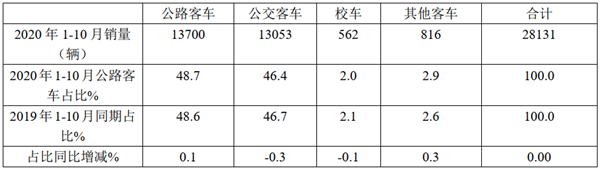 根据上牌数据,2020年前10月江苏区域客车销量结构统计: