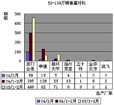 上述是2004年2月份各生产企业高档客车销售量的简要分析,尽管公路客运已进入淡季,但是广州五十铃等一批高档客车后来者的销售量依然稳步上升,改变了往年淡季销量低的现象,令人鼓舞,也让竞争对手越来越重视。