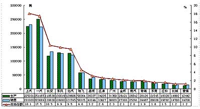 2004年1-3月累计主要汽车企业产销量及市场份额排序