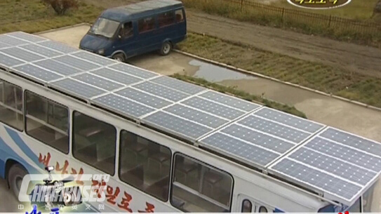 朝鲜开发新能源公交车 车顶配备32块太阳能电池板