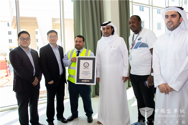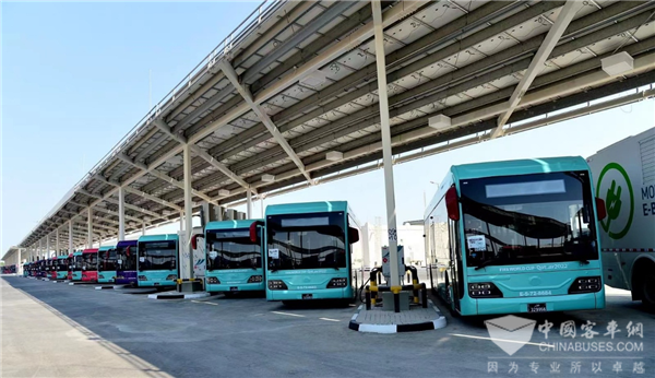 2022年10月18日,卡塔尔交通部长、环境与气候变化部长、公共工程管理(Ashghal)部长、卡塔尔国家运输公司CEO、交付与传承至高委员会(SC)的官员及宇通卡塔尔国家公司负责人共同见证了全球最大电动车场站在卢赛尔的落成典礼。