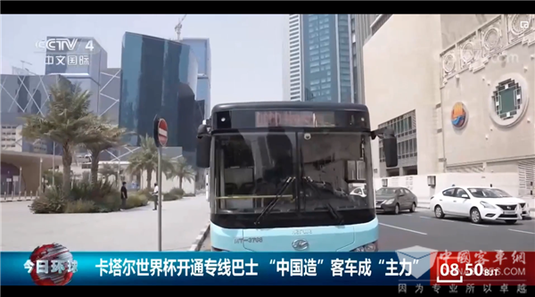 到世界杯前,2022年11月12日,央视《新闻直播间》报道了“世界杯开赛在即,组委会推出快速巴士服务方便球迷观赛”。画面中,一辆辆苏州金龙海格客车往返于酒店和体育场之间,为球迷提供快速接驳服务。