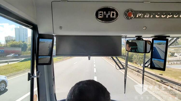与普通大巴相比,“绿线”巴士的安全性也进行了升级。司机驾驶室的两个后视镜都已实现电子化,这样即使刮风下雨也不会导致后视镜脏了而看不清楚;巴士上还安装了覆盖整个车内的监控录像,分为四段,确保整个公交车内没有死角,司机可以一目了然。