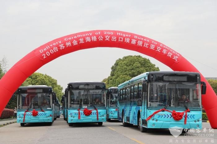 凭借定制化的高性能车型和立体化的解决方案,苏州金龙不断加快“走出去”的步伐,在埃塞俄比亚公共交通市场占有率稳步提升。截止目前,苏州金龙已累计出口埃塞俄比亚客车近1000辆,不仅为当地公共交通发展贡献了“海格方案”,也进一步提升了中国客车在“一带一路”共建国家的影响力。
