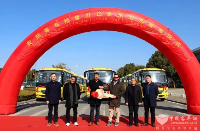 一直以来,安凯客车围绕着“创造全球品牌,做世界的安凯”的国际化战略深入布局海外市场,用过硬的产品品质和技术实力赢得客户的高度认可。此次交付的50辆客车,实力强、口碑高,将有效提升圣多明各区域的学生通勤体验,并助力该地逐步构建起完善的全国学生交通体系。