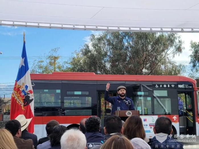 智利时间2024年5月9日,中通纯电动客车批量交付仪式在智利奥希金省兰卡瓜市成功举行。智利总统加夫列尔· 博里奇、智利交通部长胡安·卡洛斯·穆尼奥斯、智利奥希金州长帕布罗·席尔瓦·阿玛雅出席仪式并讲话。