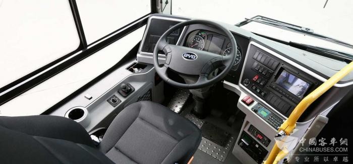 在安全性能方面,采用大容量高安全铁电池,在研发过程中对铁电池进行火烧、短路、高温等极端测试,确保电池具有良好的安全稳定性。此外,该车并搭载比亚迪全新升级的动力电池热管理系统,在有效延长电池使用寿命的同时为乘客提供了更加安全可靠的出行保障;动力系统上,K9采用集成轮边驱动和再生制动两大技术的低地板轮边驱动桥,可实现高效驱动。