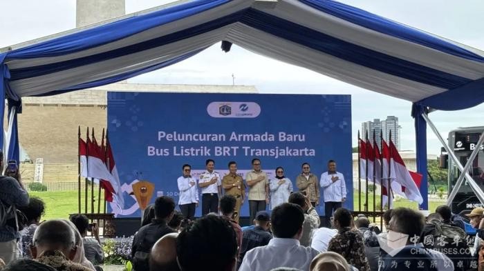交付仪式现场气氛热烈,彩旗飘扬。印尼交通运输部副部长、国企事业部副部长以及雅加达代理省长等重量级嘉宾悉数出席,共同见证了这一重要时刻。他们的到来不仅体现了印尼政府对本次交付活动的高度重视,也彰显了开沃集团在印尼市场的深远影响力和良好口碑。