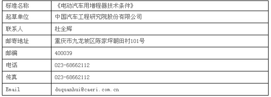 汽车行业标准《电动汽车用増程器技术条件》公示