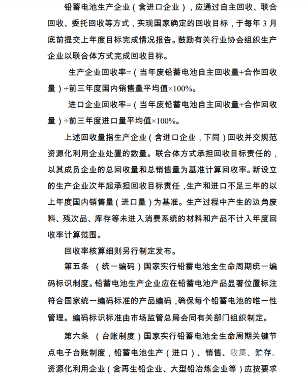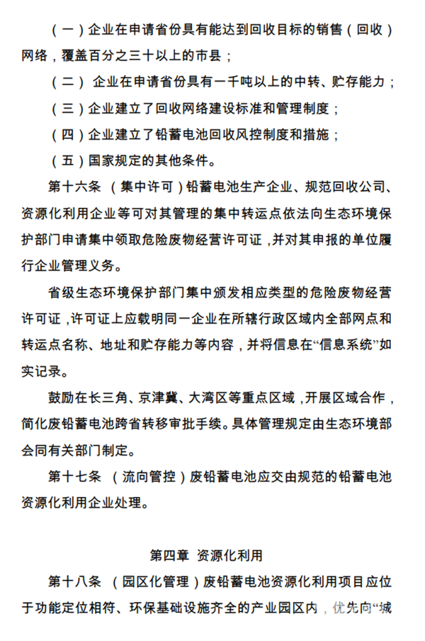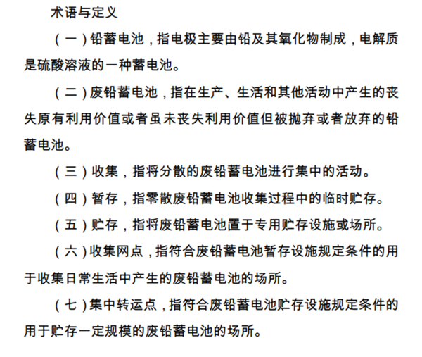 征求意见稿第九条规定:所有从事铅蓄电池生产、销售、收集、 贮存、运输、资源化利用的单位,应当依法办理营业执照和相应 的许可证,未取得营业执照和许可证的一律不得开展相应业务。