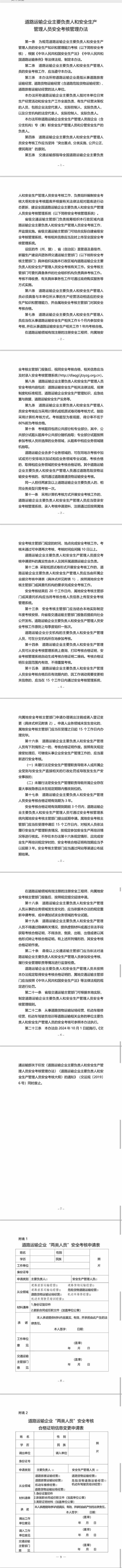 附件:1、道路运输企业主要负责人和安全生产管理人员安全考核管理办法