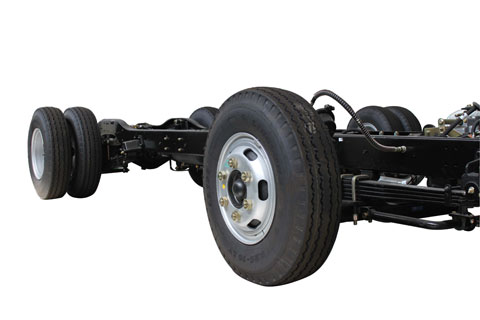 1、弯纵梁车架,一次性冲压成形,强度高(截面达到190mm),有效降低地板高度,满足两级、三级踏步需求;