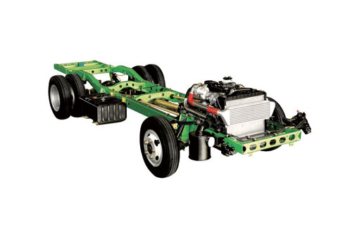 2、整体冲压成型的弯纵梁盒式车架,进一步提高车架强度,降低底盘自重;