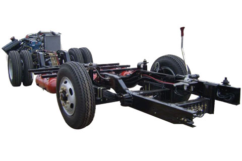 1、前不对称车架,适合改装成前中开门、二级踏步的9米级后置天然气城市公交车型;