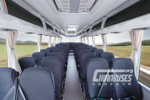 整车曲线饱满圆润,外型极具张力;宽广车窗视野宽阔,让沿途风景尽收眼底。360°空间升级,乘坐更宽敞;高密度海绵座椅,符合人身生理曲线;一键换新风系统,性能操控,得心应手;三维人机工程研究,提高驾驶员可视能力;测力方向盘、陀螺仪、换挡力和踏板力传感器等高精度高灵敏度的进口仪器,有效减少驾驶员操纵力;宇通自主研发的盘式桥系统,大幅度提升制动减速度和制动稳定性。行李舱全新升级超大上推式贯通行李舱,最大容积12.5立方米。
