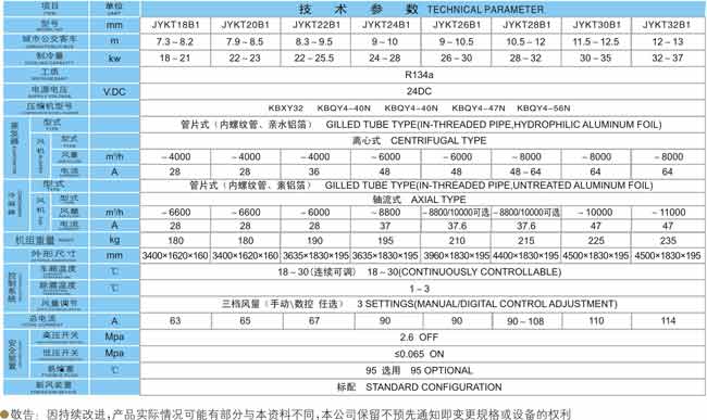 精益顶置式B1客车空调参数配置