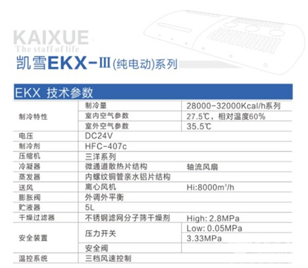 郑州凯雪EKX-Ⅲ(纯电动)系列空调参数配置