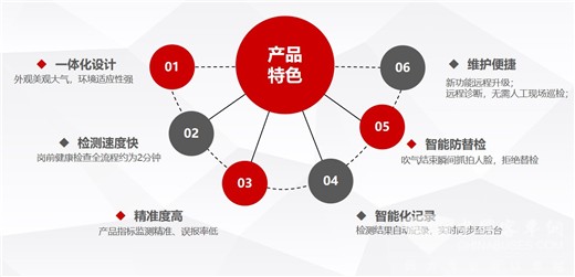 体温检测:非接触式红外测温,酒检的同时检测体温,体温检测结果实时显示。