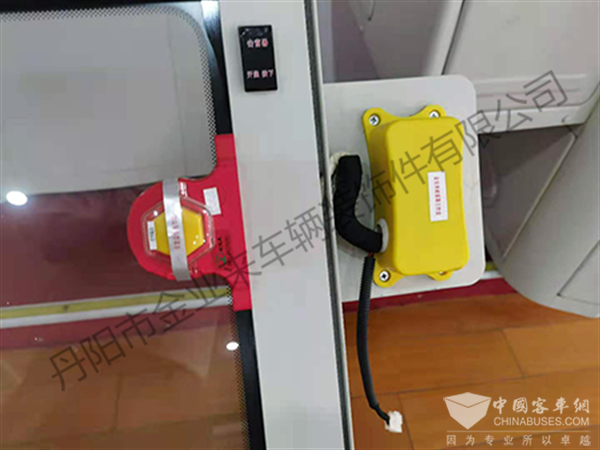 金业来自主研发的手自一体电磁式破窗器在车辆发生应急突发事件时,可在1S内的即短时间实现驾驶员一键启动破窗器自动破窗或乘客强制手动实现手动破窗,同时当手动破窗时翁鸣器报警,为乘客安全应急逃生赢得宝贵的逃生时间,由于该手自一体电磁式破窗器设有电路通路状态显示、手动翁鸣报警功能,解决了电磁破窗器日久线圈和电路断路、手动操作不能报警等技术问题,提高了破窗器的安全可靠性,使得该手自一体电磁式破窗器性能指标,能满足客车JT/T 1030-2016行业击窗器的行业标准技术要求。