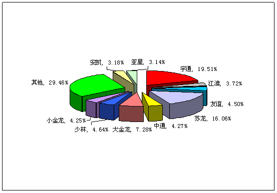 表一:2008年前6月中型客车销售量前10名企业排名表 单位:辆