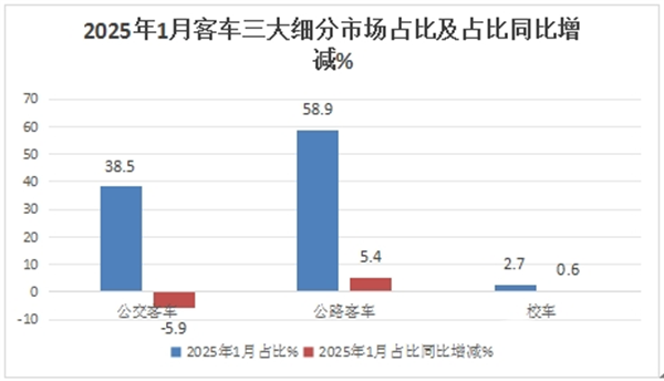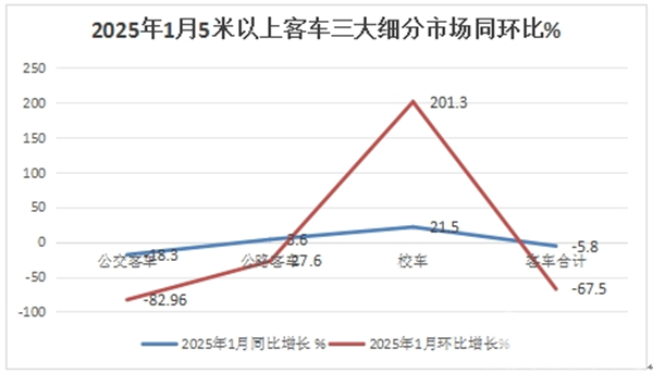 上图表可见,在2025年1月5米以上公路、公交、校车三大细分市场中: