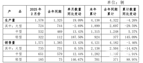 近日,金龙汽车发布了2025年2月份产销数据快报。