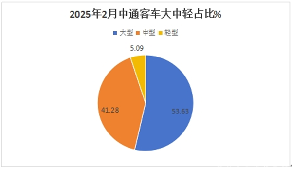 ---从产品销售结构来看,今年2月份,中通大型客车销量最多(占比53.63%)领跑各细分市场;是中通客车市场的主体部分;中型客车销量占比%居第二(41.28%);轻型及物流车占比5.09%,居最少;
