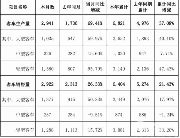 据分析主要得益于金龙汽车在新能源公交、旅游等各领域的大幅度增长所拉动,特别是在大型新能源公交客车及旅游公路客车方面、出口方面的表现均较突出。