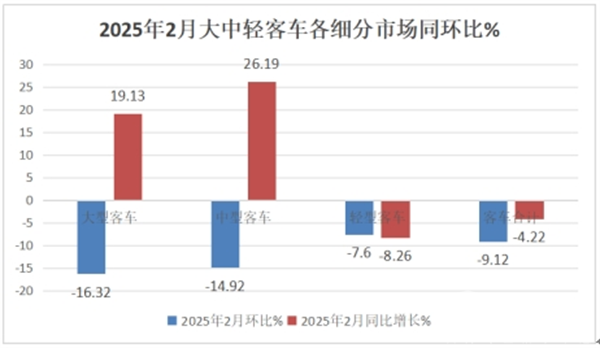 综上所述,2025年2月我国的大中轻客车市场遇冷,表现相对较差。