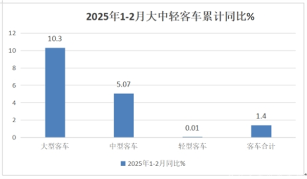 上图表可见,在2025年前2月大中轻客车累计销量同比中: