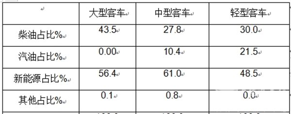 特点四、按发动机搭载的燃料种类划分:新能源在中型客车占比最大,柴油在大型客车中占比最高;汽油类在轻型客车中占比最大