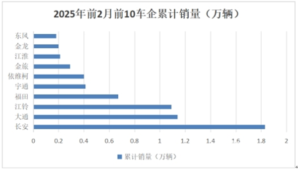 上图可见,在2025年1-2月大中轻客车累计销量中,长安、大通及江铃居前三。