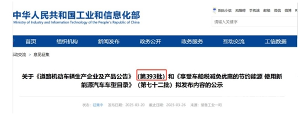 2025年3月20日,工信部发布关于《道路机动车辆生产企业及产品公告》(第393批公告,下也称“本批次公告”),这是2025年以来工信部发布的第三个批次的汽车新车产品公告。
