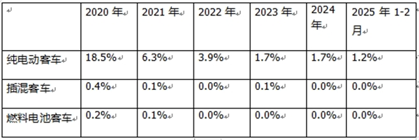 四、2025年前2月各技术路线新能源客车装机量同比及占比:
