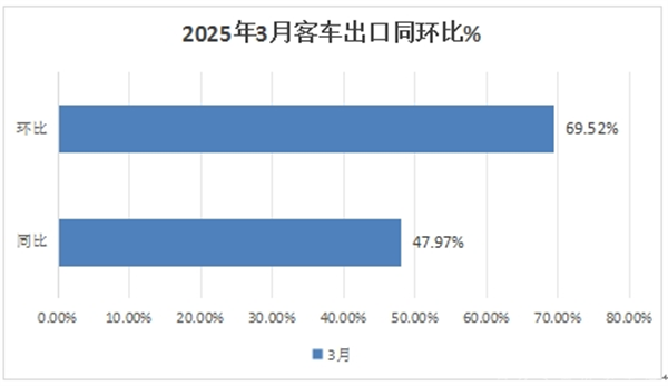 总之,今年3月及前3月我国客车出口同比均呈现较大幅度的增长之态势,给2025年全年我国客车出口增长夯实了基础。