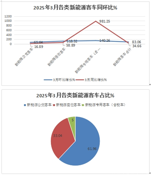 表1:根据中国客车统计信息网数据,2025年3月7米以上新能源客车各细分市场销量及同环比比较、市场占比: