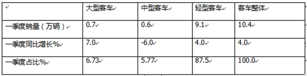 ---轻型客车同比增长4%,与国内客车大盘持平,市场占比87.5%,居第一。